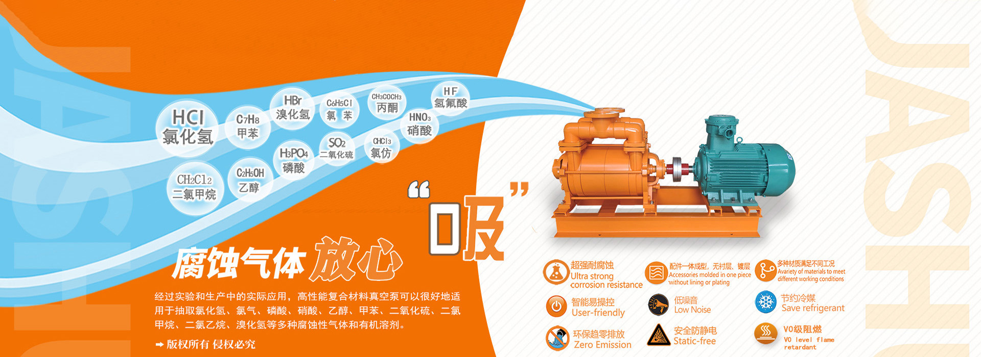 淄博華舜耐腐蝕真空泵有限公司主要生產(chǎn)各種型號(hào)和規(guī)格的水噴射泵、耐酸泵、耐酸真空泵等產(chǎn)品,是一家集科研開發(fā)、設(shè)計(jì)咨詢、生產(chǎn)、銷售、服務(wù)于一體,利用新型高性能復(fù)合材料,專業(yè)生產(chǎn)耐腐蝕液環(huán)真空泵的國(guó)家高新技術(shù)企業(yè), 坐落于“中國(guó)泵業(yè)名城”---山東省淄博市博山區(qū),公司通過(guò)了ISO9001質(zhì)量體系認(rèn)證。公司獨(dú)立研發(fā)的具有多項(xiàng)自主知識(shí)產(chǎn)權(quán)的專利產(chǎn)品-耐腐蝕系列水環(huán)式真空泵,通過(guò)了省級(jí)科技成果鑒定,處于“國(guó)際先進(jìn)水平”。 產(chǎn)品過(guò)流部件采用三大系列高性能復(fù)合材料(HS-V130、HS-V110、HS-V80)一體成型,耐腐蝕范圍廣、無(wú)襯層不脫落、節(jié)能效率高、運(yùn)行可靠、環(huán)保節(jié)水、 體積小、重量輕、使用壽命長(zhǎng)等特點(diǎn)。